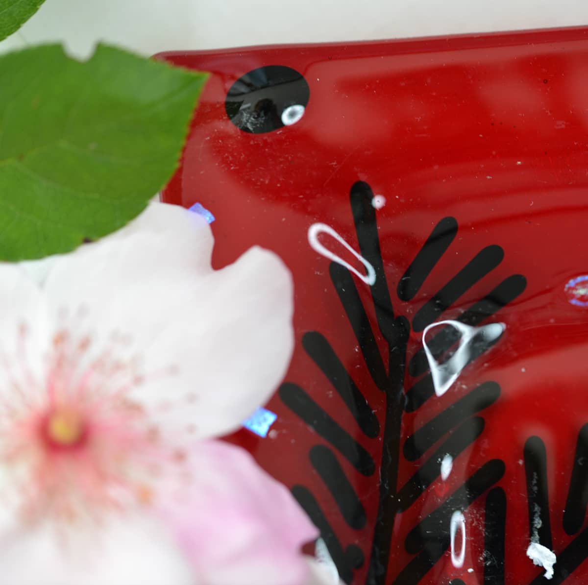 Art de la table, assiette fusionnée et évasée rectangulaire . Thématique Noël  pour cette assiette utilisable pendant les fêtes.